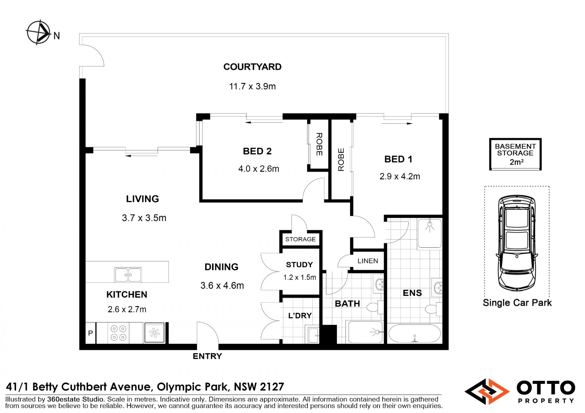 Internal & Coutyard 115sqm and Carspace 16sqm and storage 2sqm
